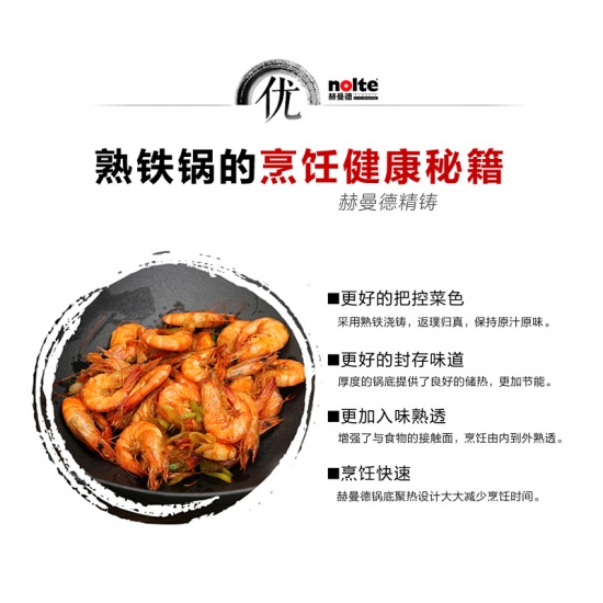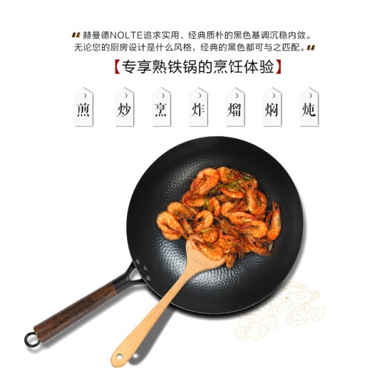 【手工锻打老铁锅】赫曼德(NOLTE)32cm熟铁炒锅知味·老铁锅(送木锅盖)