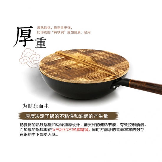 赫曼德(NOLTE)32cm熟铁炒锅知味·老铁锅(送木锅盖)
