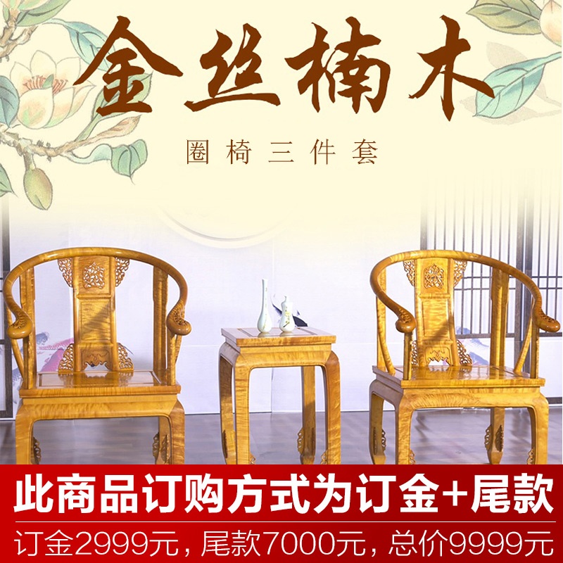 【精选用料 做工精美】百年正宣金丝楠圈椅三件套