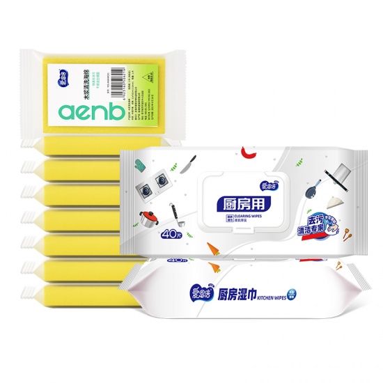 爱恩倍厨房清洁湿巾40片*2包+海绵擦洗碗木浆棉8片