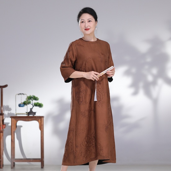 千奈莉龙贡缎双面穿香云纱连衣裙23-40