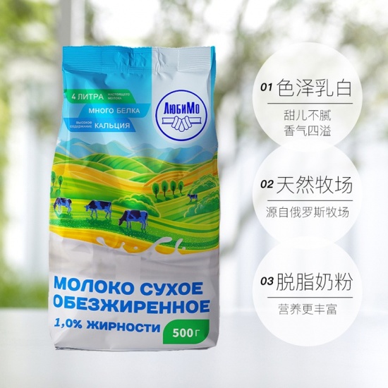 【配料表纯净】柳宾斯基俄罗斯进口脱脂奶粉500g