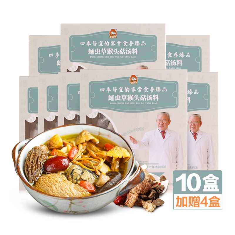 【买10包送4包】【养生汤包】食小二蛹虫草猴头菇汤料80g*10包礼盒加赠4包懒人汤包滋补品养生炖汤煲汤料食材干货