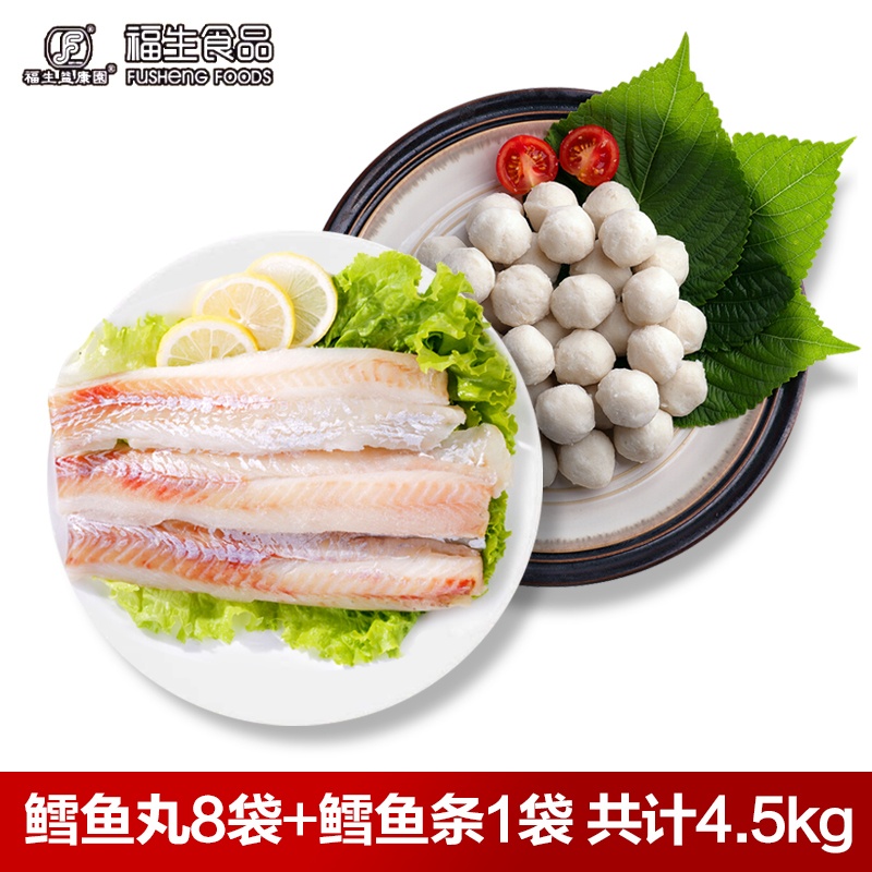 福生阿拉斯加深海鳕鱼丸组 鳕鱼丸500g*8袋 狭鳕鱼条500g*1袋